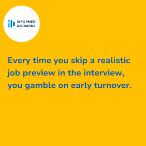 Every time you skip a realistic job preview in the interview, you gamble on early turnover.