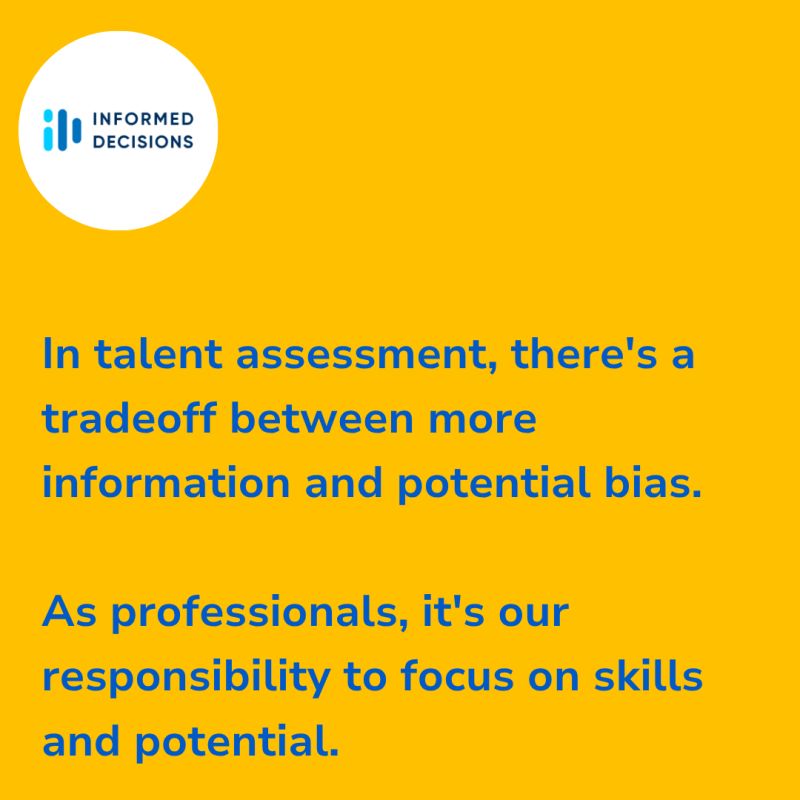 In talent assessment, there's always a tradeoff between more information and potential bias. As professionals, it's our responsibility to focus on skills and potential.