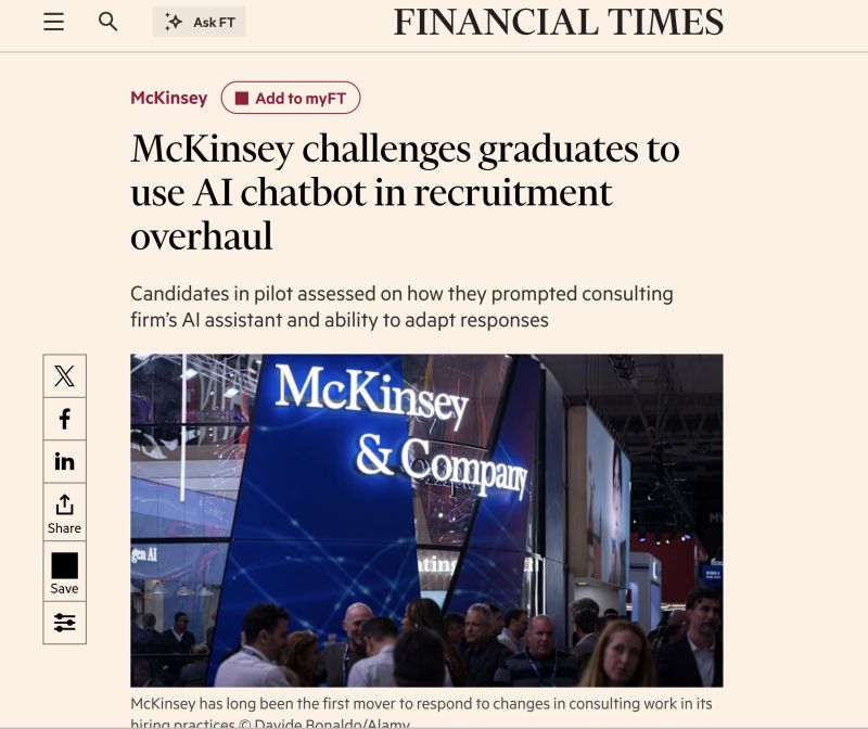 Second, McKinsey is 𝗯𝗿𝗼𝗮𝗱𝗲𝗻𝗶𝗻𝗴 𝗶𝘁𝘀 𝗳𝘂𝗻𝗻𝗲𝗹 𝗯𝗲𝘆𝗼𝗻𝗱 𝗲𝗹𝗶𝘁𝗲 𝗱𝗲𝗴𝗿𝗲𝗲𝘀, prioritizing the 𝘀𝗸𝗶𝗹𝗹𝘀 𝘁𝗵𝗮𝘁 𝗮𝗰𝘁𝘂𝗮𝗹𝗹𝘆 𝗺𝗮𝘁𝘁𝗲𝗿 for consulting. Judgment. Curiosity. Structured thinking. The ability to work with imperfect inputs and adapt fast.