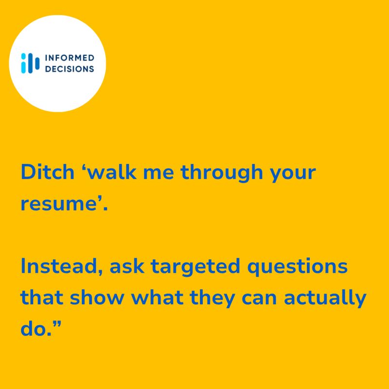 Last week, 57% of candidates said โWalk me through your resumeโ helps them connect the dots in their career story, but 44% find it lazy or irrelevant.